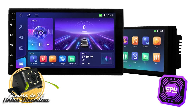• Radio FM 87.5MHz - 108.0MHz com 18 slots para memorizar